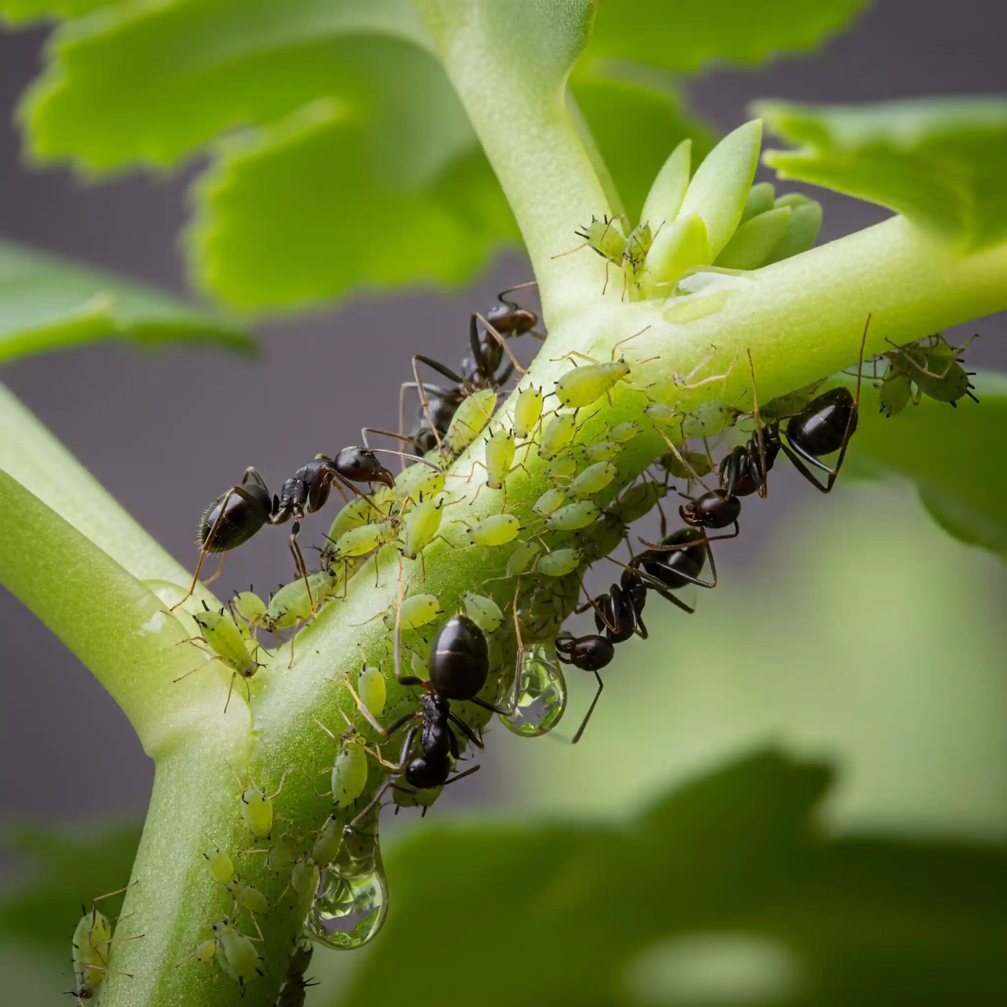 - Ant Activity: A Strange Hint: Have you seen a lot of ants running up and down your plant? Ants and aphids have an interesting relationship. Ants like the sweet honeydew that aphids make, and they “milk” it from the aphids. Some types of ants will even “farm” the aphids and keep them safe from predators in exchange! If you see a lot of ants on a plant, it’s a good sign that there is an aphid colony nearby.
