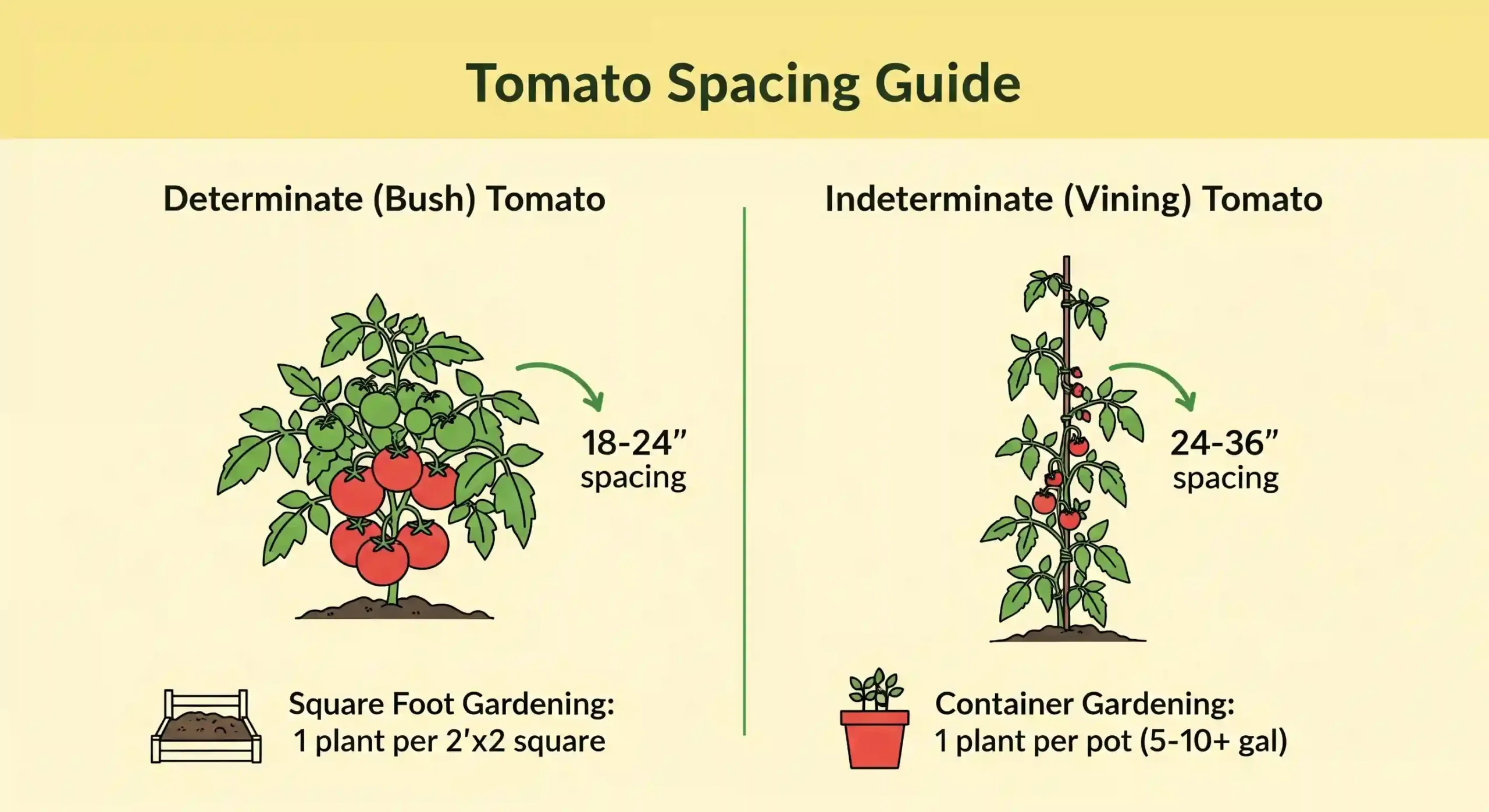 - Determinate tomato spacing: Aim for 18 to 24 inches (approximately 45–60 cm) between plants. This allows them the space they need to complete without crowding.